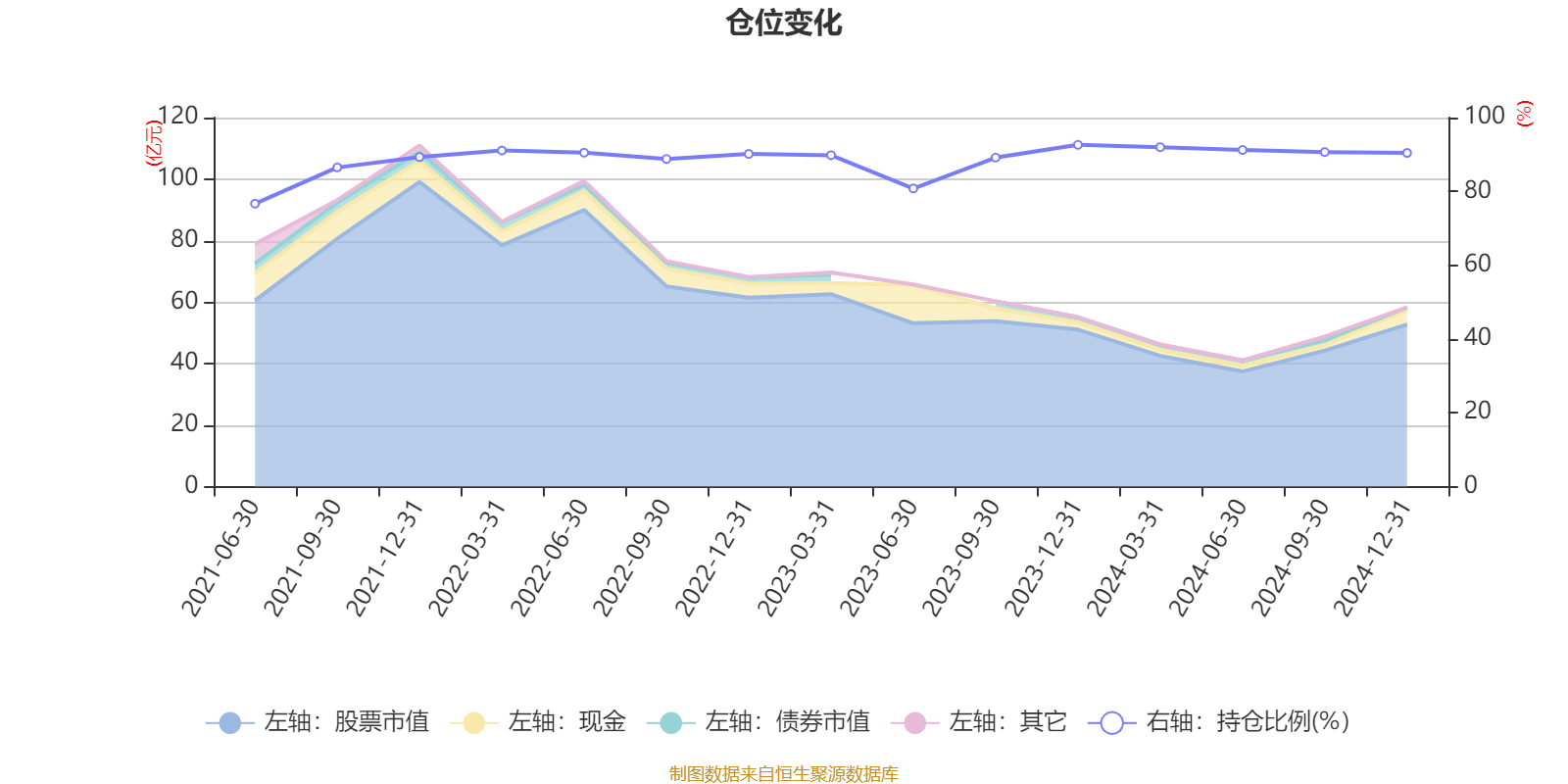 据定期报告数据统计,近三年平均股票仓位为89.76%,同类平均为88.07%。2023年末基金达到92.62%的最高仓位,2021年上半年末最低,为76.67%。