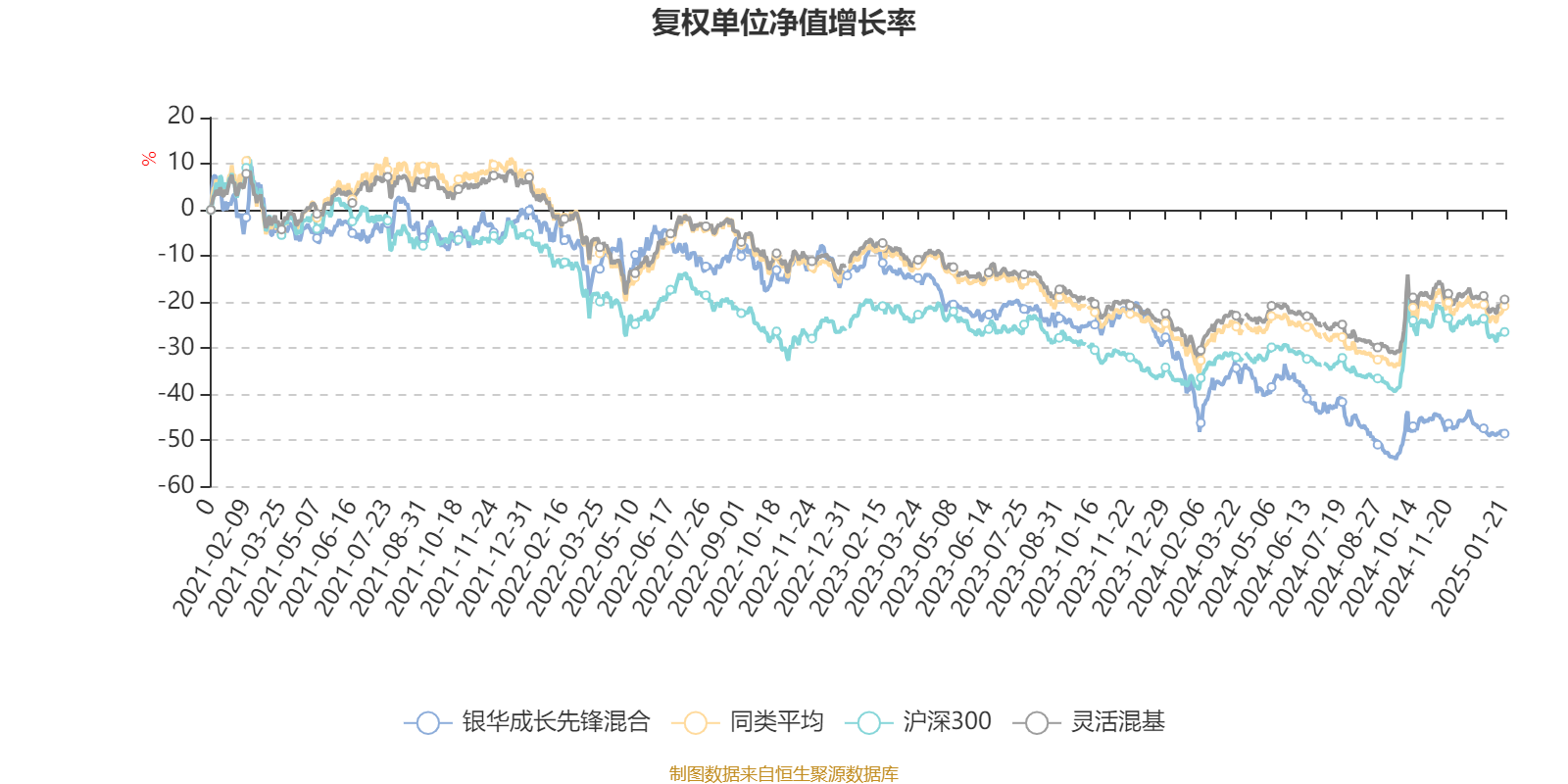 截至1月21日,银华成长先锋混合近三个月复权单位净值增长率为-5.70%,位于同类可比基金827/920;近半年复权单位净值增长率为-11.74%,位于同类可比基金914/920;近一年复权单位净值增长率为-19.53%,位于同类可比基金912/920;近三年复权单位净值增长率为-45.98%,位于同类可比基金858/898。