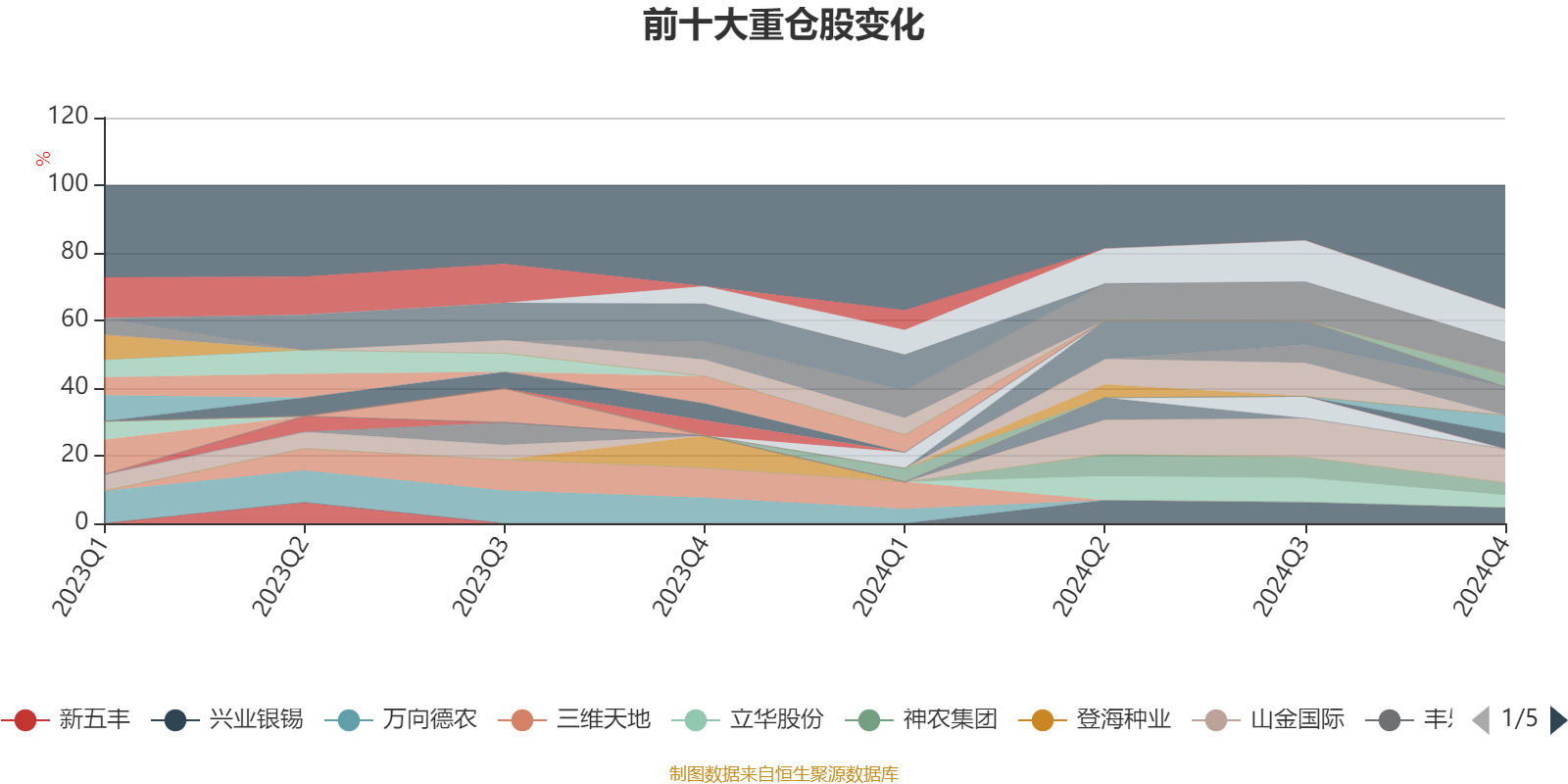 该基金持股集中度较高,近2年前十大重仓股集中度长期超过60%。截至2024年四季度末,基金十大重仓股分别是山金国际、盛达资源、赤峰黄金、诺普信、中国移动、兴业银锡、中国海油、九号公司、神农集团、立华股份。