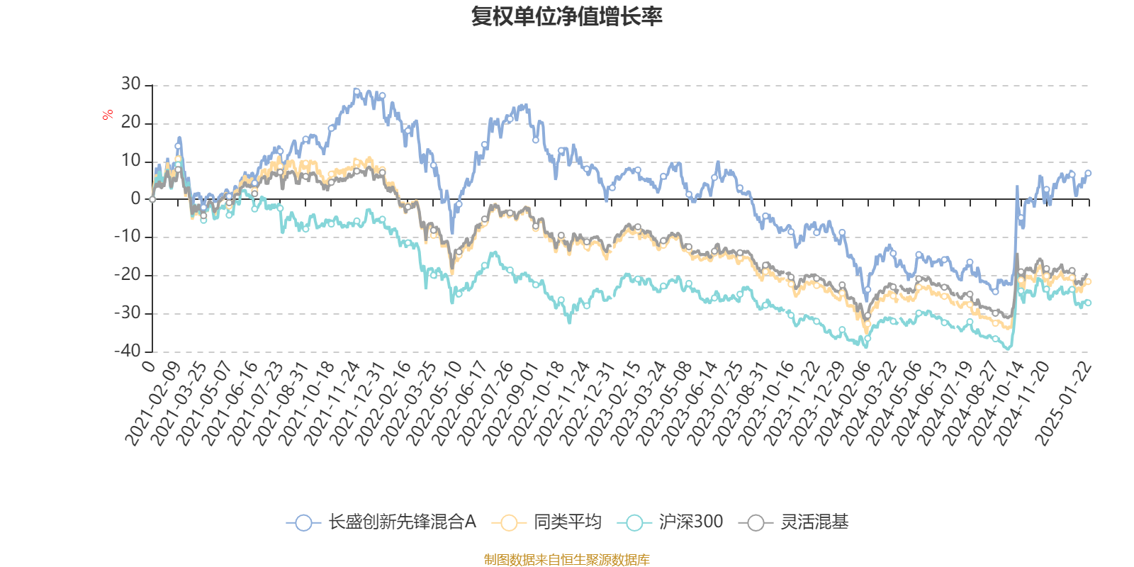 截至1月22日,长盛创新先锋混合A近三个月复权单位净值增长率为7.14%,位于同类可比基金74/920;近半年复权单位净值增长率为28.04%,位于同类可比基金49/920;近一年复权单位净值增长率为33.54%,位于同类可比基金78/920;近三年复权单位净值增长率为-12.15%,位于同类可比基金218/898。