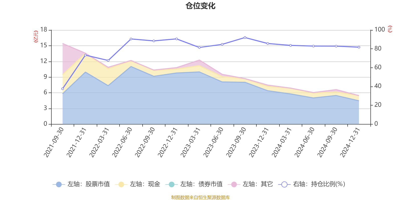 据定期报告数据统计,近三年平均股票仓位为84.35%,同类平均为85.73%。2023年三季度末基金达到92.01%的最高仓位,2021年三季度末最低,为37.57%。