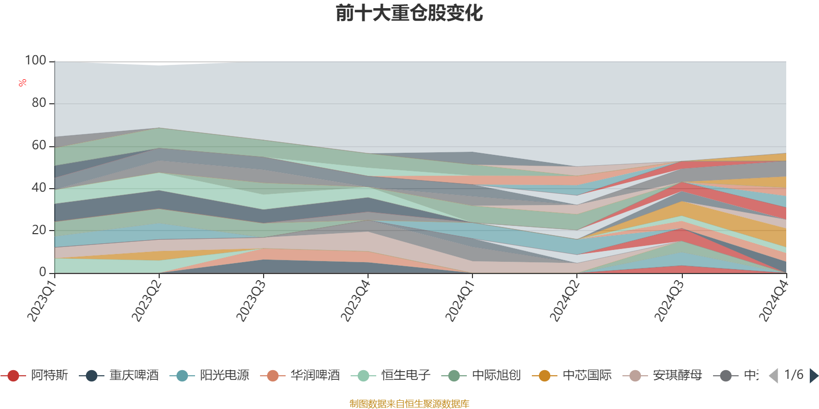 该基金持股集中度较高。截至2024年四季度末,基金十大重仓股分别是宁德时代、腾讯控股、北方华创、立讯精密、招商银行、比亚迪电子、中航沈飞、比亚迪股份、巨子生物、美团-W。