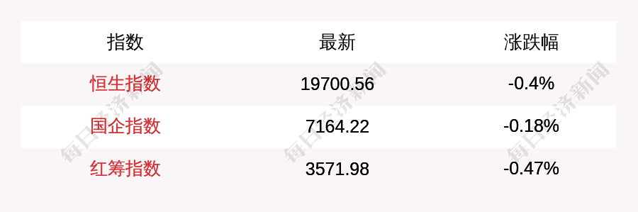 每经AI快讯:北京时间1月23日16:00,恒生指数收盘下跌78.21点,跌幅为0.4%,报收19700.56点;国企指数收盘下跌12.92点,跌幅为0.18%,报收7164.22点;红筹指数收盘下跌16.79点,跌幅为0.47%,报收3571.98点。南向资金当日净流入54.03亿港元。