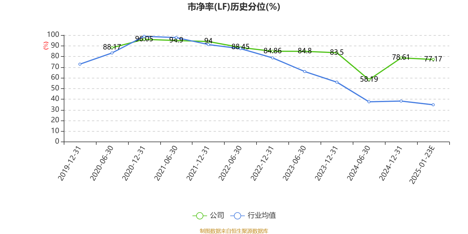 市盈率、市净率为负时,不显示当期分位数,会导致折线图中断。
