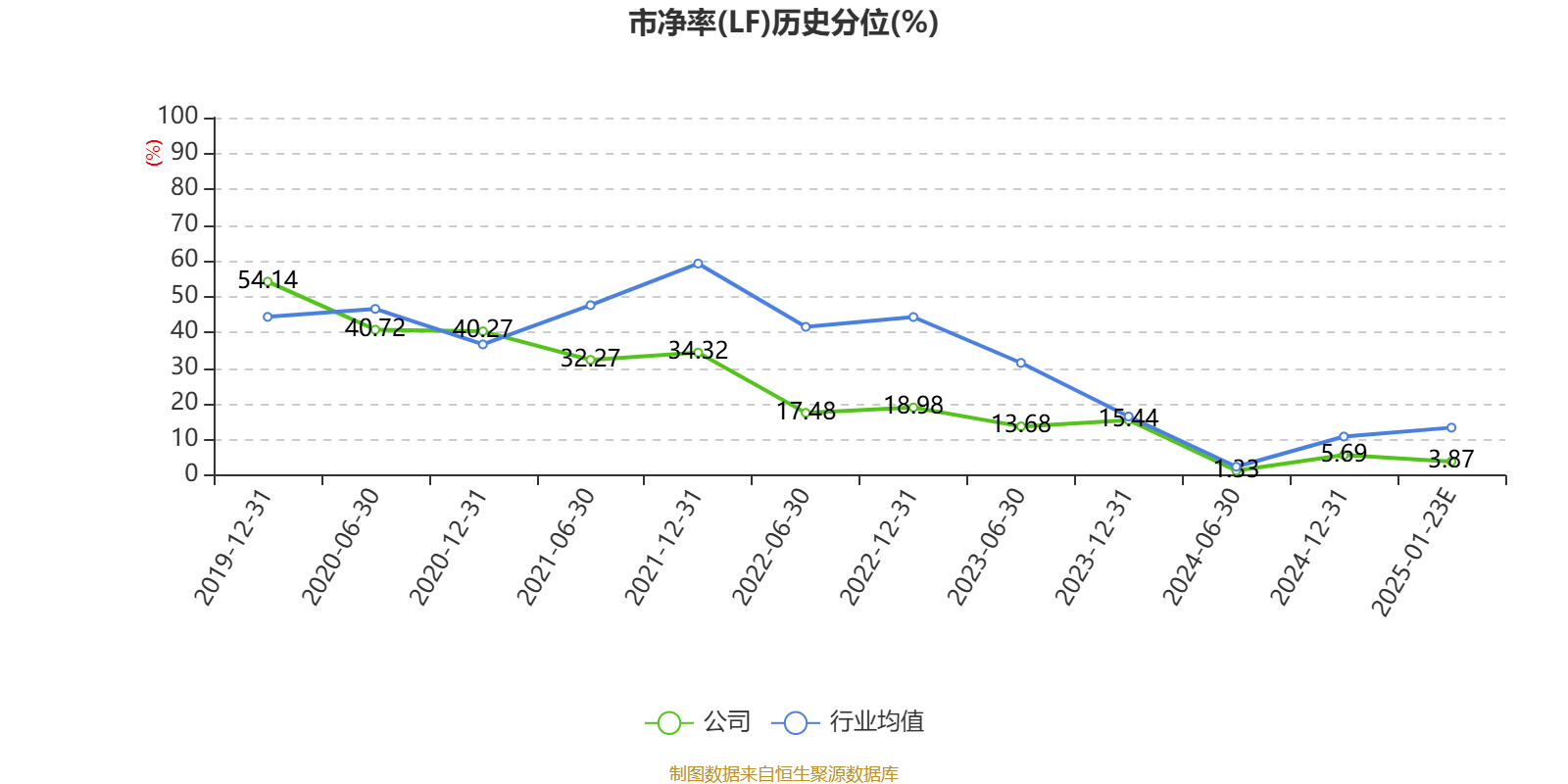 市盈率、市净率为负时,不显示当期分位数,会导致折线图中断。
