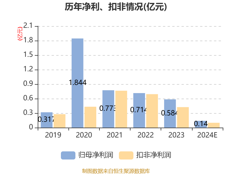 中证智能财讯蓝箭电子(301348)1月23日晚间披露2024年度业绩预告,预计2024年归母净利润1200万元至1600万元,同比下降72.59%-79.44%;扣非净利润预计800万元-1200万元,同比下降71.7%-81.13%。以1月23日收盘价计算,蓝箭电子目前市盈率(TTM)约为301.88倍-402.5倍,市净率(LF)约3.2倍,市销率(TTM)约6.78倍。