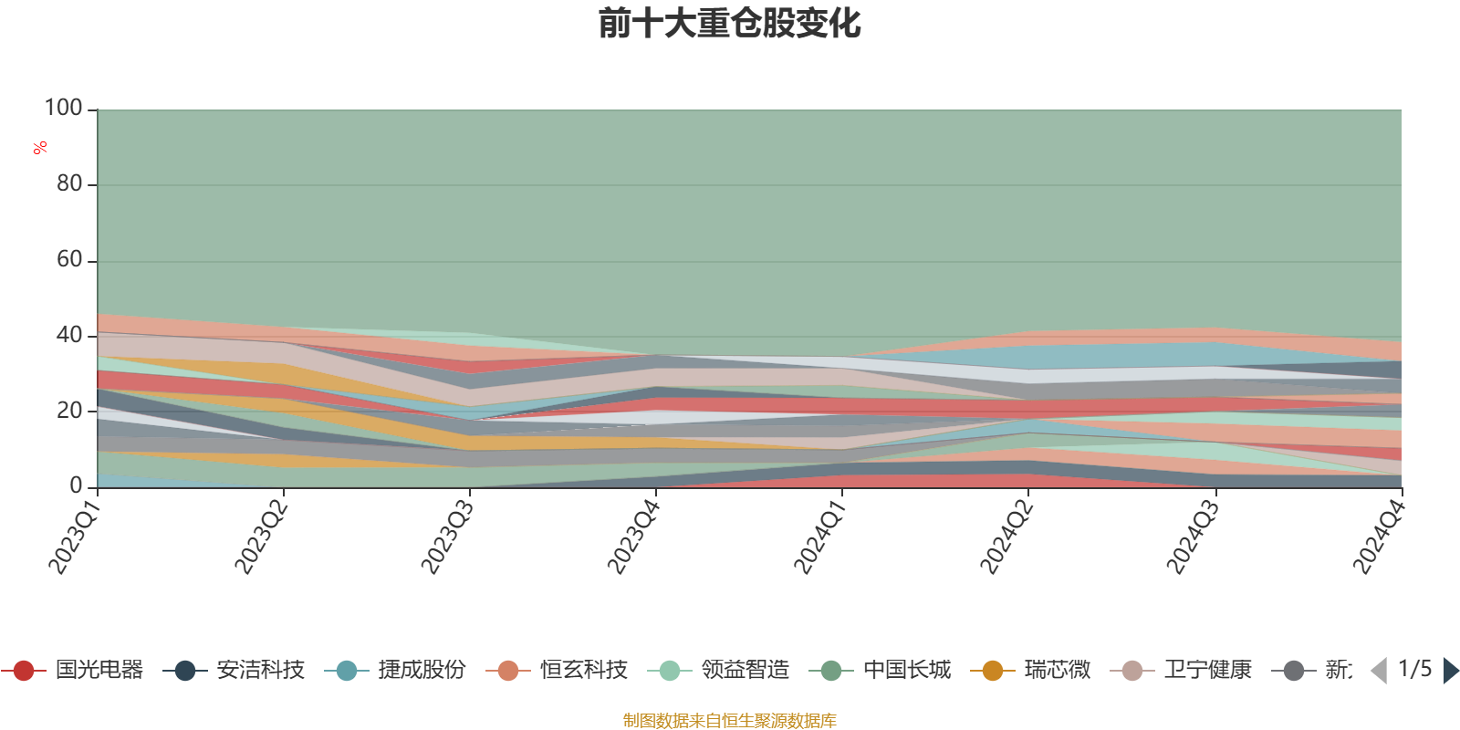 截至2024年四季度末,基金十大重仓股分别是虹软科技、国网信通、环旭电子、卫宁健康、均胜电子、立讯精密、联赢激光、杰普特、安洁科技、南方传媒。