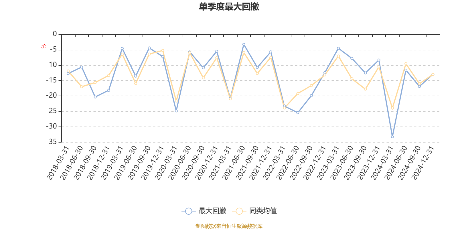 截至1月22日,基金近三年最大回撤为39.32%,同类可比基金排名29/33。单季度最大回撤出现在2024年一季度,为33.24%。