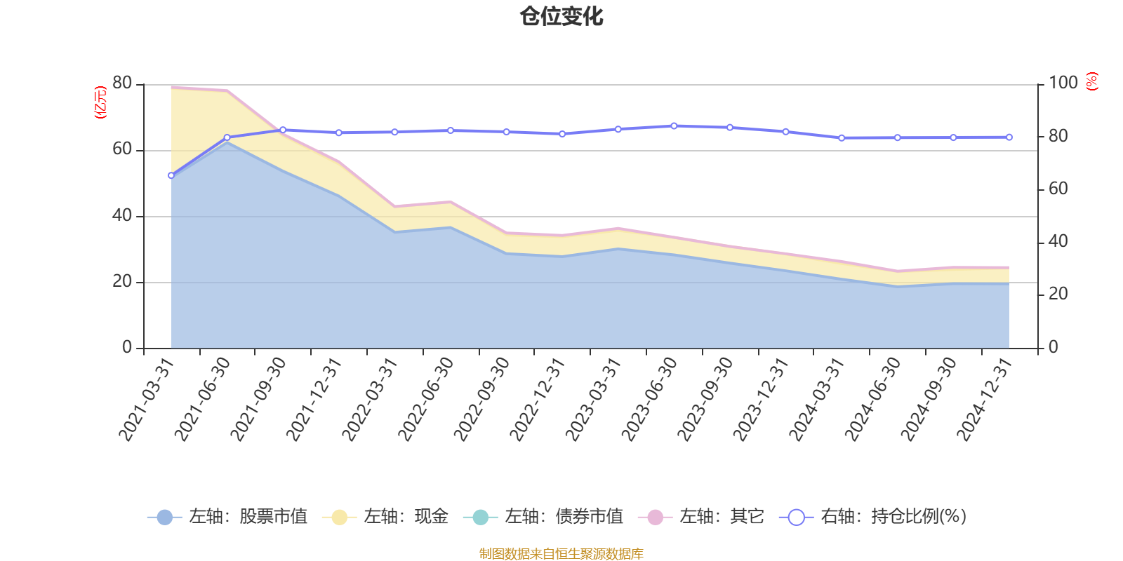 据定期报告数据统计,近三年平均股票仓位为81.6%,同类平均为88.58%。2023年上半年末基金达到84.19%的最高仓位,2021年一季度末最低,为65.42%。