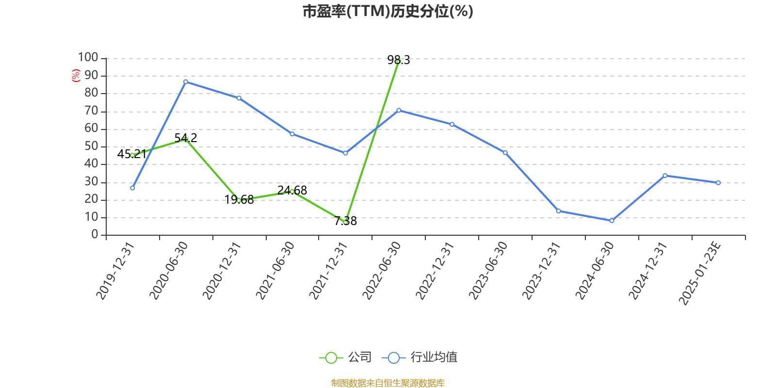 以本次披露业绩预告均值计算,公司近年市盈率(TTM)图如下所示: