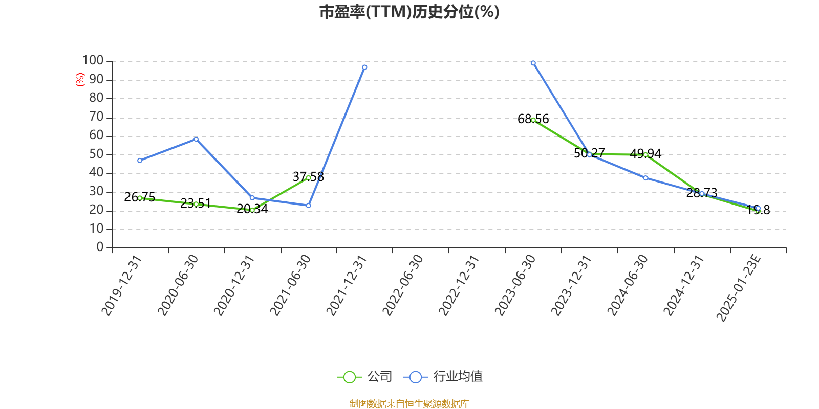 市盈率、市净率为负时,不显示当期分位数,会导致折线图中断。