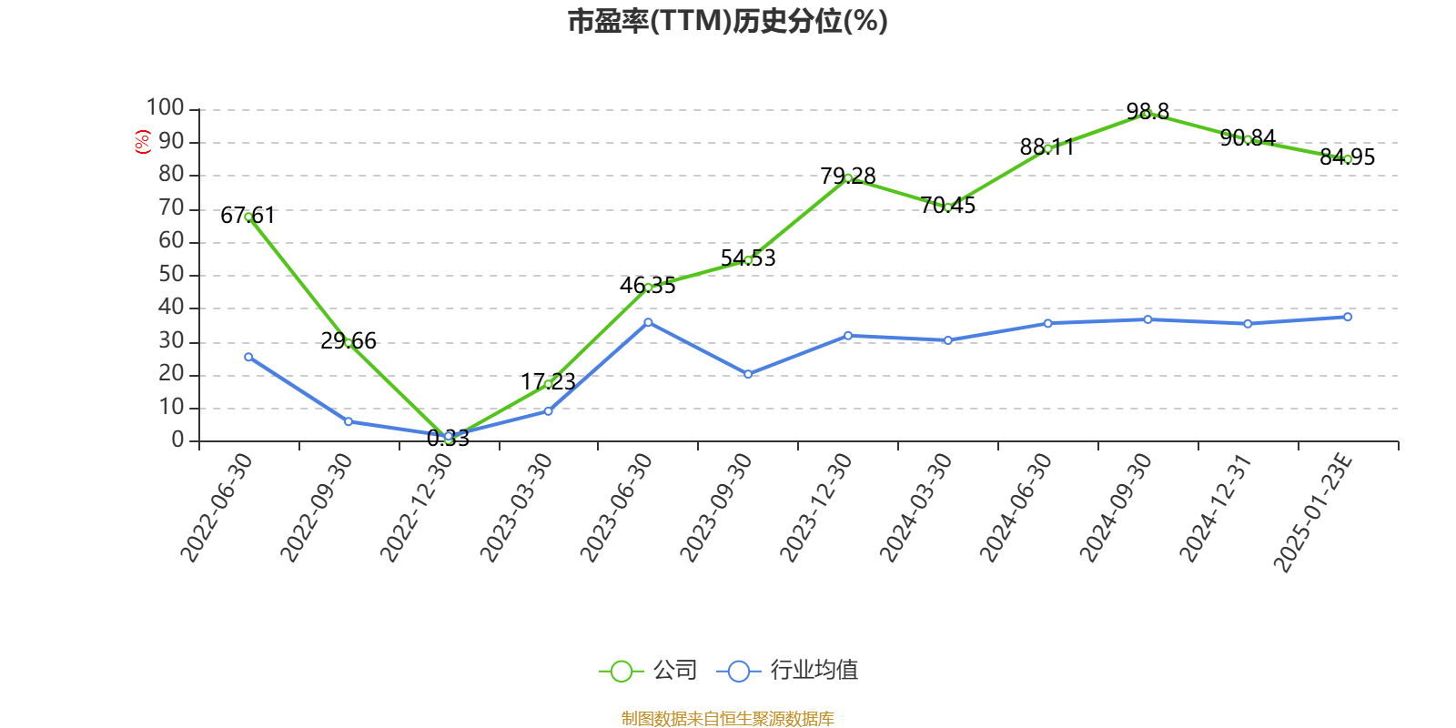 市盈率、市净率为负时,不显示当期分位数,会导致折线图中断。