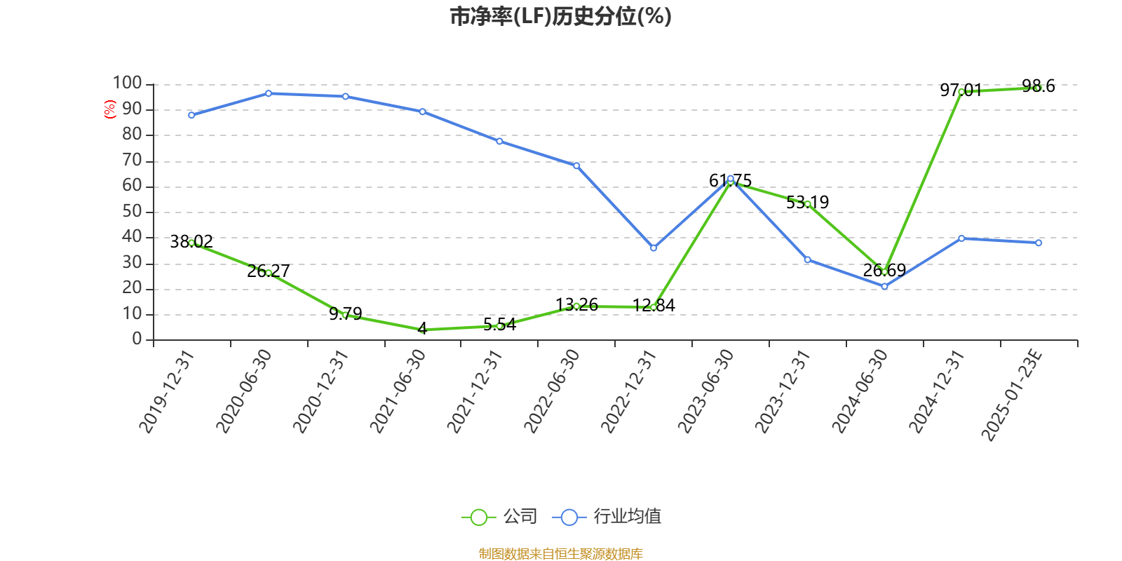 市盈率、市净率为负时,不显示当期分位数,会导致折线图中断。