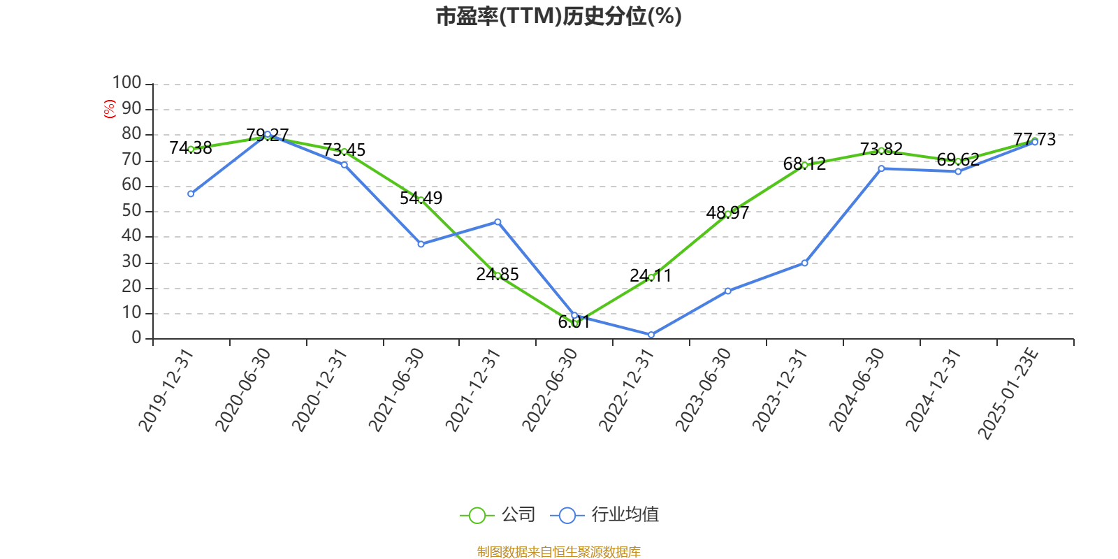 市盈率、市净率为负时,不显示当期分位数,会导致折线图中断。