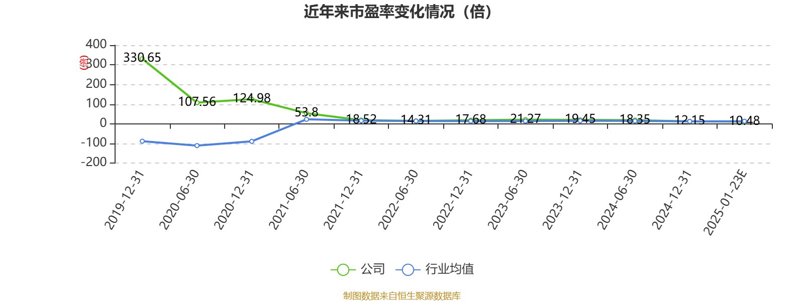 以本次披露业绩预告均值计算,公司近年市盈率(TTM)图如下所示: