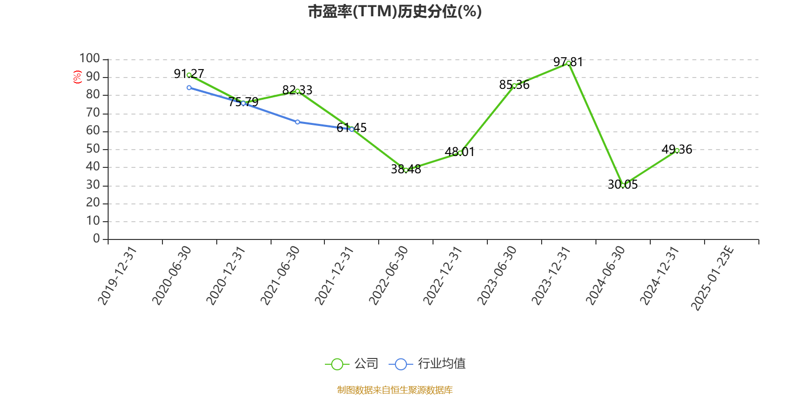 以本次披露业绩预告均值计算,公司近年市盈率(TTM)图如下所示:
