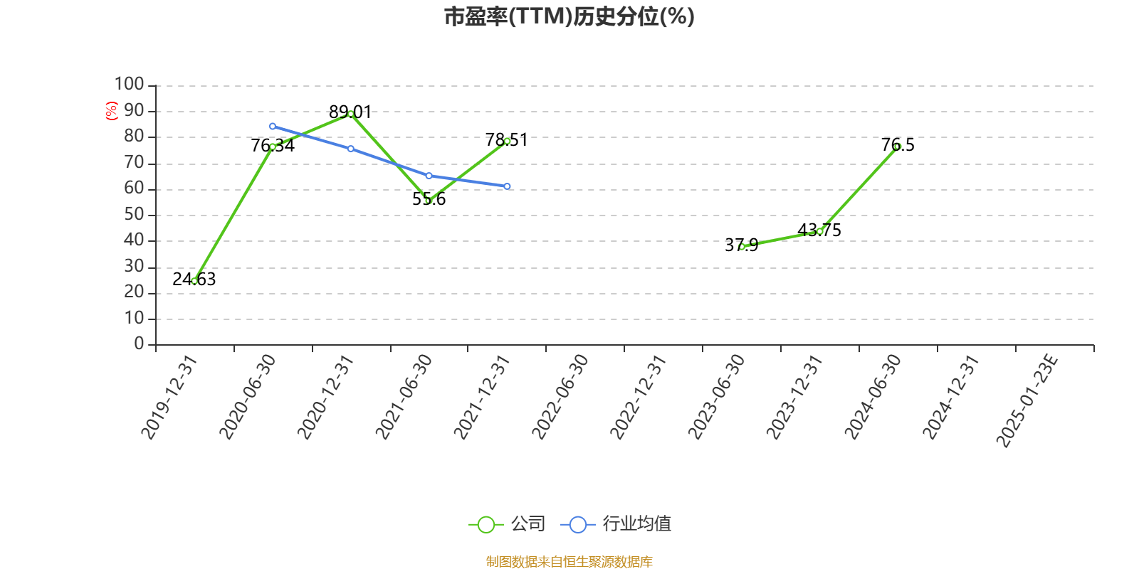 以本次披露业绩预告均值计算,公司近年市盈率(TTM)图如下所示: