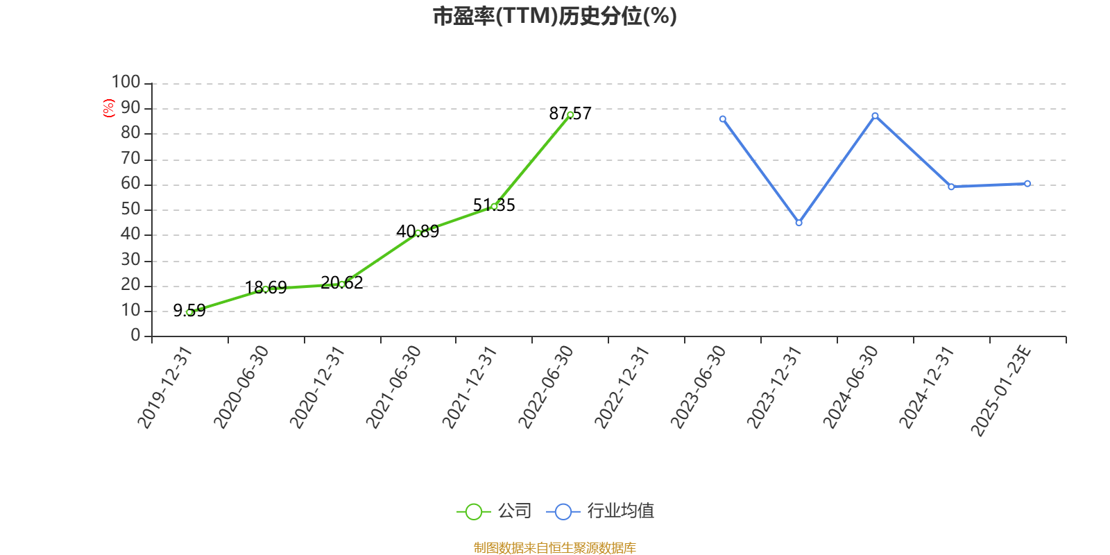以本次披露业绩预告均值计算,公司近年市盈率(TTM)图如下所示: