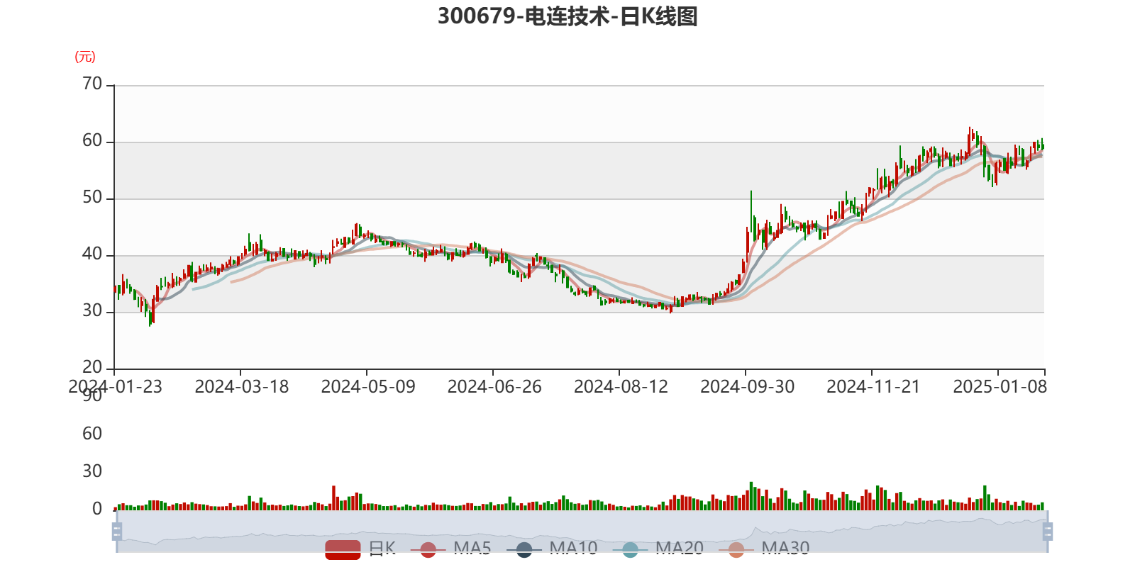中证智能财讯电连技术(300679)1月23日晚间披露2024年度业绩预告,预计2024年归母净利润5.86亿元至6.86亿元,同比增长64.54%-92.61%;扣非净利润预计5.7亿元至6.7亿元,同比增长63.6%-92.3%。以1月23日收盘价计算,电连技术目前市盈率(TTM)约为36.34倍-42.54倍,市净率(LF)约5.24倍,市销率(TTM)约5.86倍。