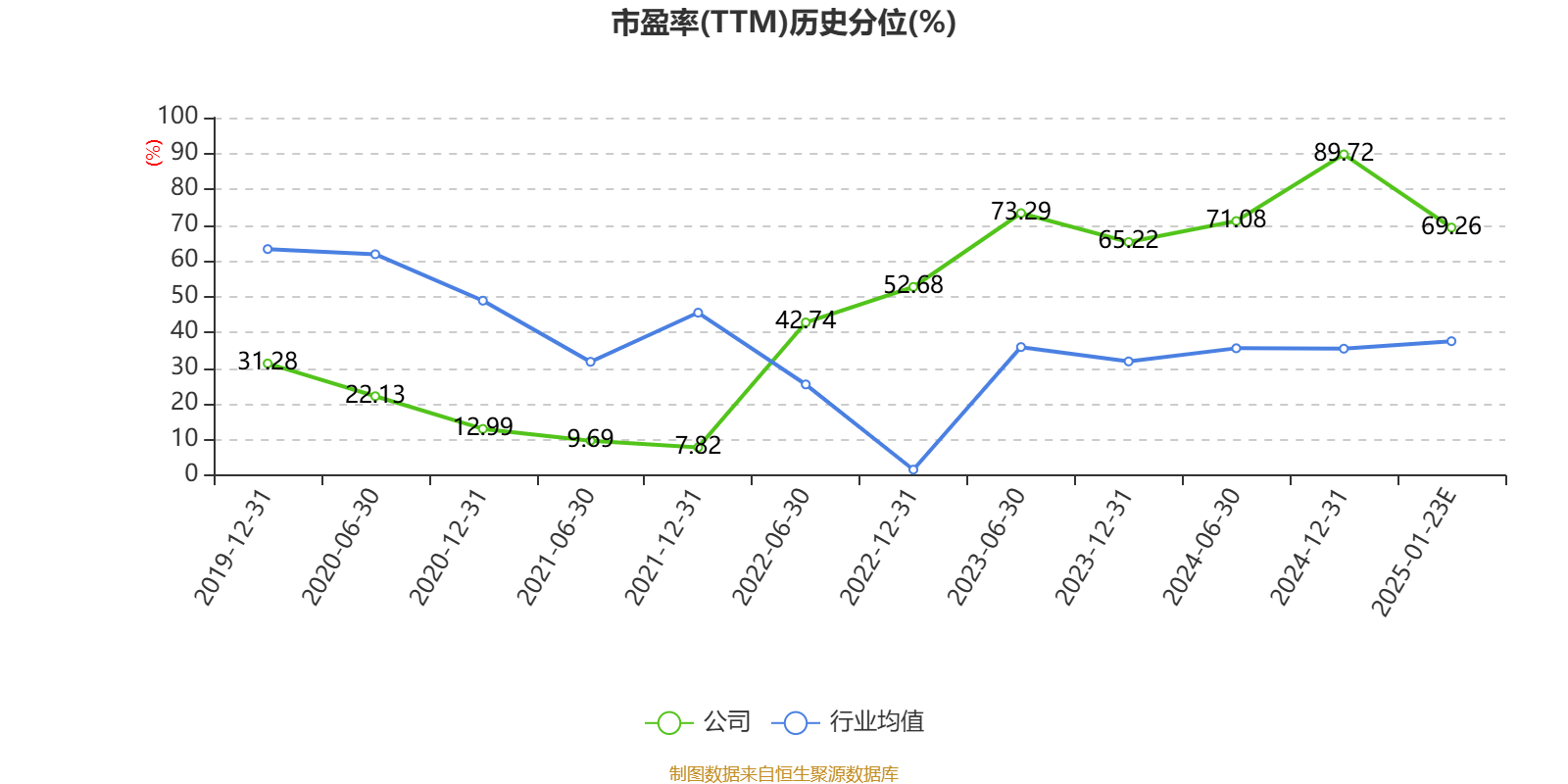 以本次披露业绩预告均值计算,公司近年市盈率(TTM)图如下所示: