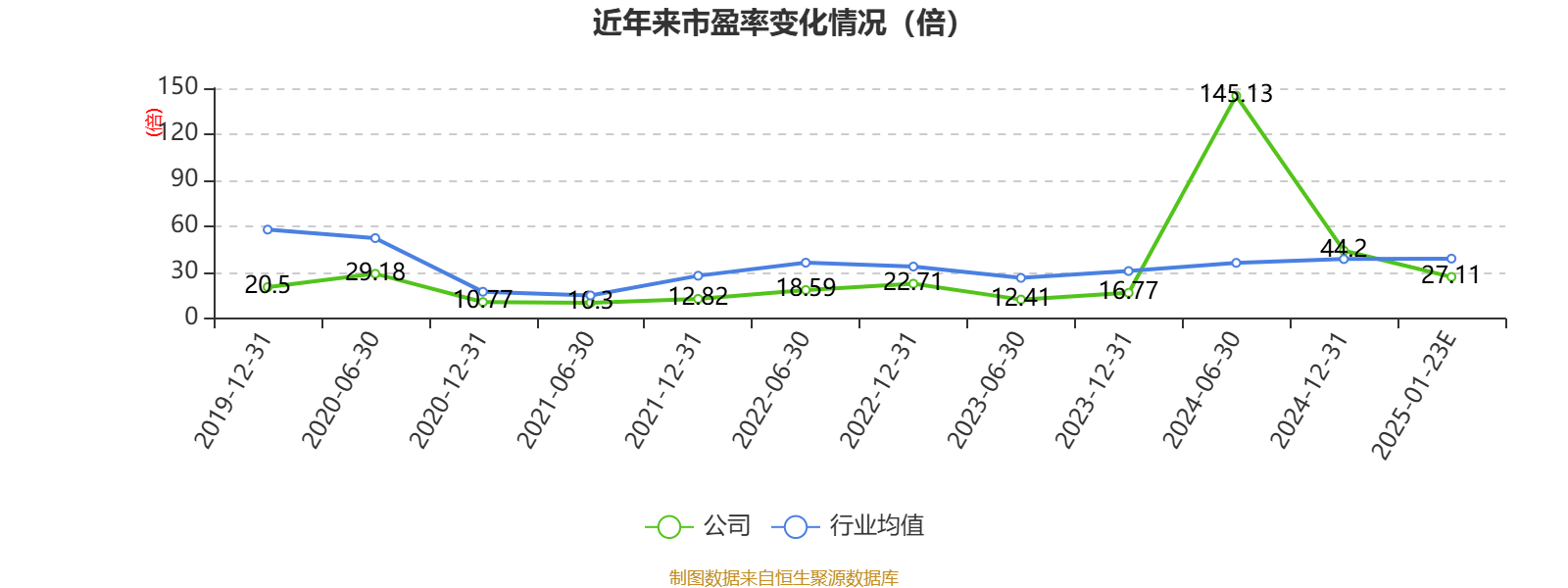 以本次披露业绩预告均值计算,公司近年市盈率(TTM)图如下所示: