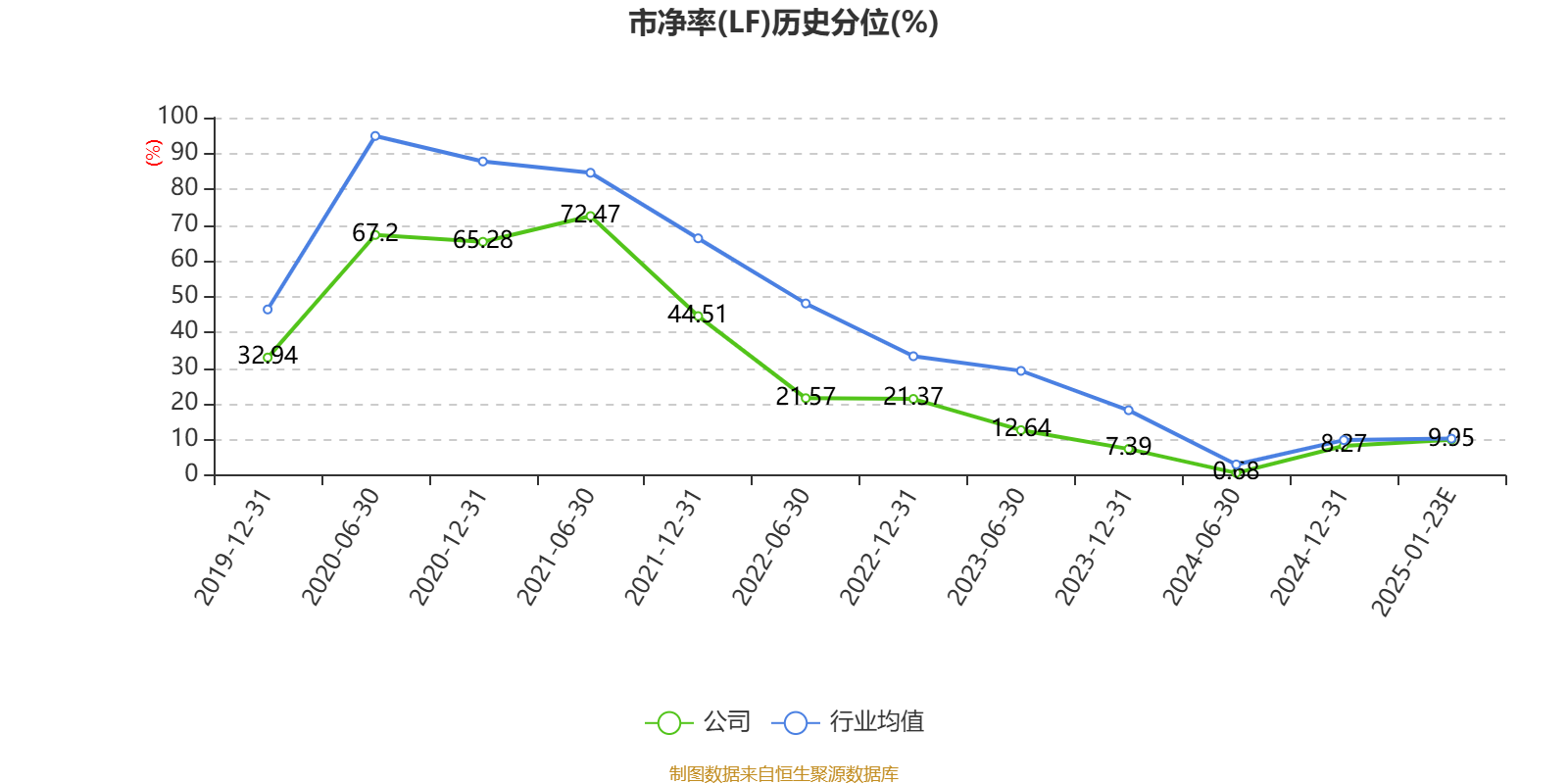市盈率、市净率为负时,不显示当期分位数,会导致折线图中断。