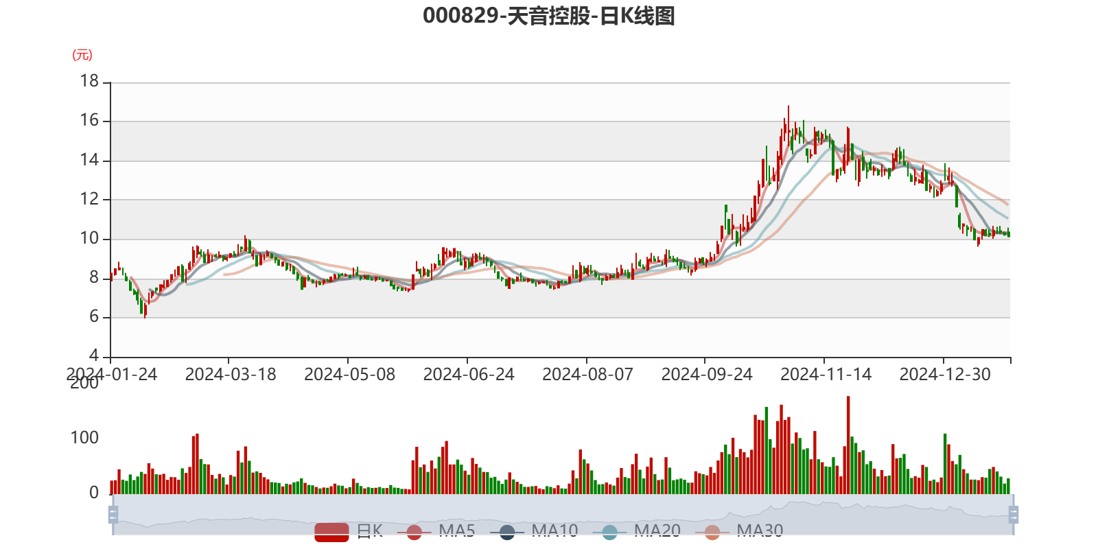 中证智能财讯天音控股(000829)1月23日晚间披露2024年度业绩预告,预计2024年实现营业收入840亿元至860亿元,同比下降9.31%-11.42%;归母净利润2800万元至3600万元,同比下降56.97%-66.53%;扣非净利润亏损9300万元至1.1亿元,上年同期盈利1739.45万元;基本每股收益0.0273元/股-0.0351元/股。以1月23日收盘价计算,天音控股目前市盈率(TTM)约为288.45倍-370.87倍,市净率(LF)约3.48倍,市销率(TTM)约0.12倍。