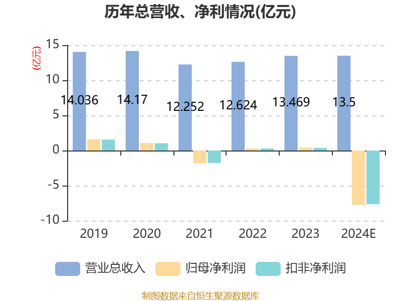 中证智能财讯恒实科技(300513)1月23日晚间披露2024年度业绩预告,预计2024年实现营业收入13亿元至14亿元;归母净利润亏损6.8亿元至8.7亿元,上年同期盈利4147.9万元;扣非净利润亏损6.7亿元至8.6亿元,上年同期盈利3702.08万元。以1月23日收盘价计算,恒实科技目前市盈率(TTM)约为-3.1倍至-3.97倍,市净率(LF)约1.15倍,市销率(TTM)约2倍。