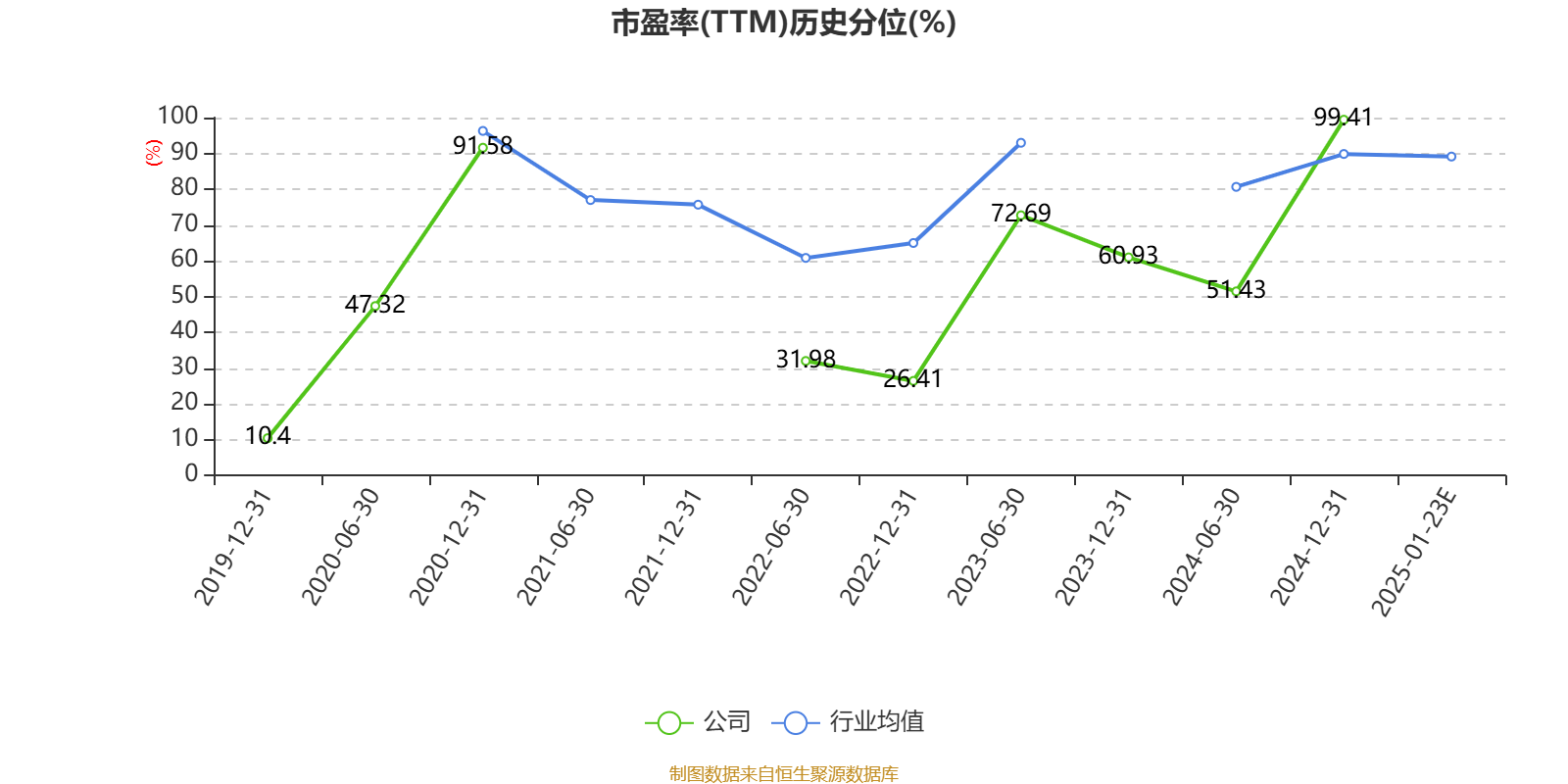 以本次披露业绩预告均值计算,公司近年市盈率(TTM)图如下所示: