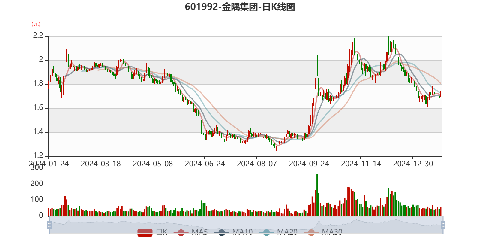 中证智能财讯金隅集团(601992)1月23日晚间披露2024年度业绩预告,预计2024年归母净利润亏损3亿元至6亿元,上年同期盈利2526万元;扣非净利润亏损28亿元至31亿元,上年同期亏损20.28亿元。以1月23日收盘价计算,金隅集团目前市盈率(TTM)约为-30.25倍至-60.51倍,市净率(LF)约0.41倍,市销率(TTM)约0.16倍。