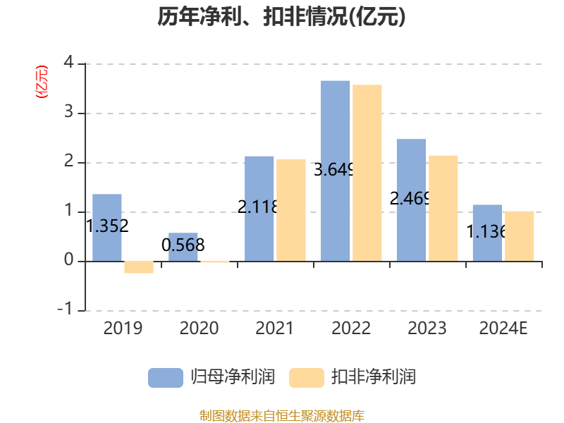 中证智能财讯上海合晶(688584)1月23日晚间披露2024年度业绩预告,预计2024年归母净利润1.02亿元至1.25亿元,同比下降49.37%-58.58%;扣非净利润预计9035.31万元-1.1亿元,同比下降48.21%-57.63%。以1月23日收盘价计算,上海合晶目前市盈率(TTM)约为96.59倍-118.05倍,市净率(LF)约2.96倍,市销率(TTM)约10.78倍。
