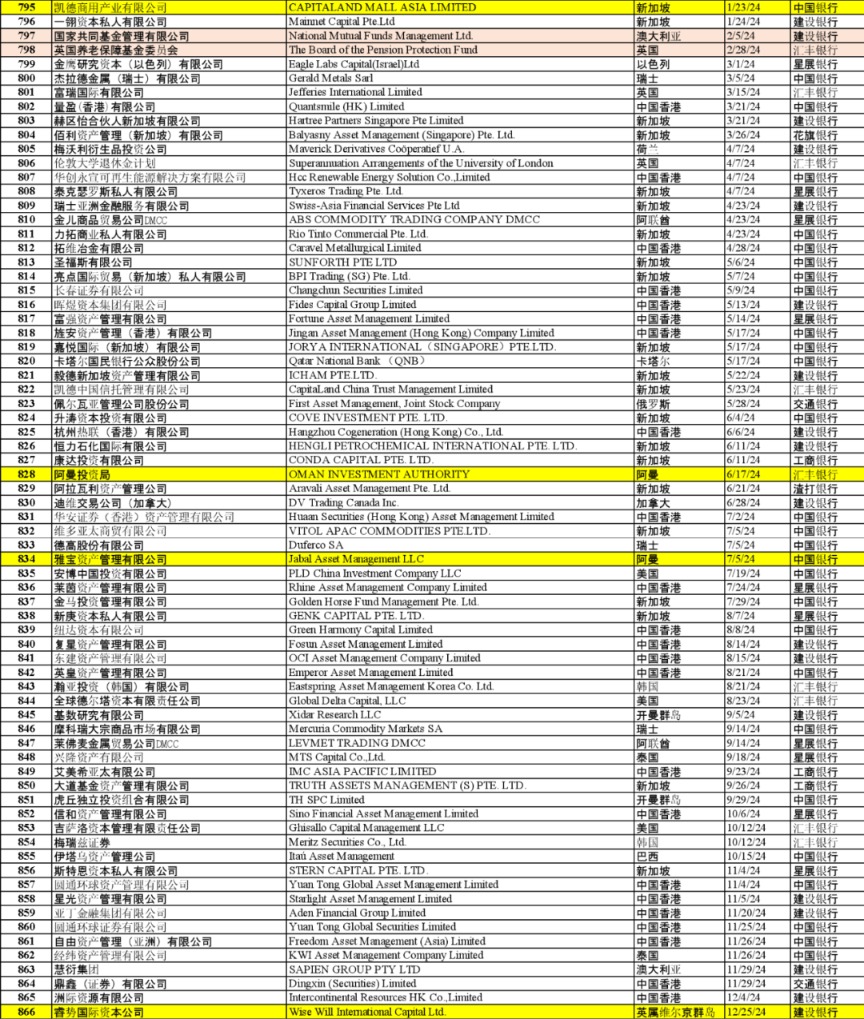 日前,中国证监会于官网公布截至2024年底的合格境外投资者名录。数据显示,截至2024年底,共有866家境外机构获得合格境外投资者资格,可布局境内的股票、债券和衍生品等。2024年,72家境外机构获得合格境外投资者资格,包含中东主权投资机构、欧美养老金等海外长期投资机构。
