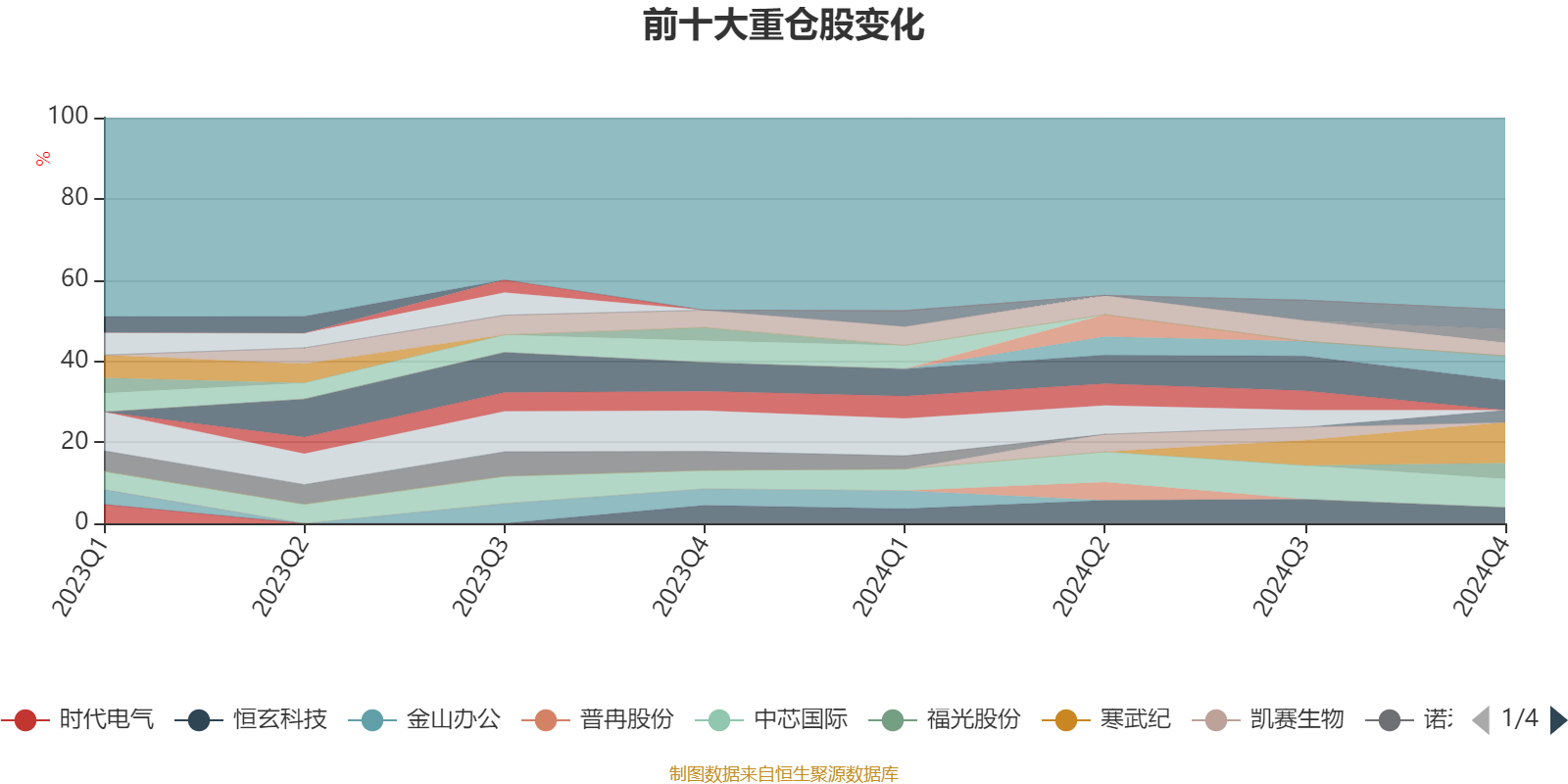 该基金持股集中度较高。截至2024年四季度末,基金十大重仓股分别是寒武纪、传音控股、中芯国际、海光信息、峰岹科技、恒玄科技、福光股份、中微公司、华海清科、晶晨股份。