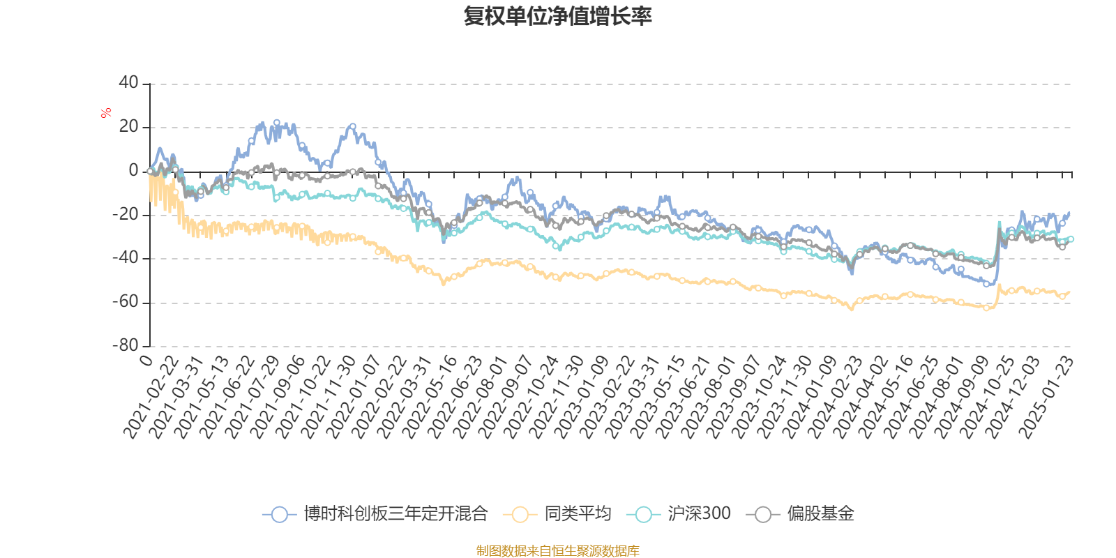 截至1月22日,博时科创板三年定开混合近三个月复权单位净值增长率为10.84%,位于同类可比基金6/210;近半年复权单位净值增长率为42.31%,位于同类可比基金1/210;近一年复权单位净值增长率为36.40%,位于同类可比基金14/210;近三年复权单位净值增长率为-17.89%,位于同类可比基金55/194。