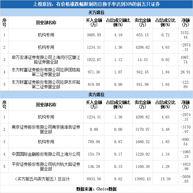 龙虎榜数据显示,今日共4个机构席位出现在龙虎榜单上,分别位列买一、买二、卖一、卖三,合计净卖出712.41万元,占龙虎榜净卖额的14.08%。