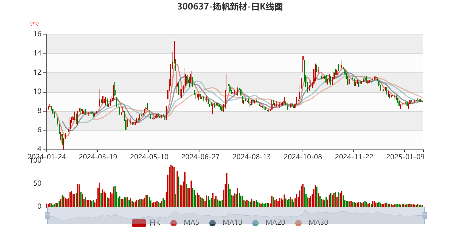 中证智能财讯扬帆新材(300637)1月24日晚间披露2024年度业绩预告,预计2024年实现营业收入7.2亿元至7.4亿元;归母净利润亏损4000万元至5000万元,上年同期亏损8773.2万元;扣非净利润亏损4500万元至5500万元,上年同期亏损9637.02万元。以1月24日收盘价计算,扬帆新材目前市盈率(TTM)约为-42.49倍至-53.11倍,市净率(LF)约3.13倍,市销率(TTM)约2.91倍。