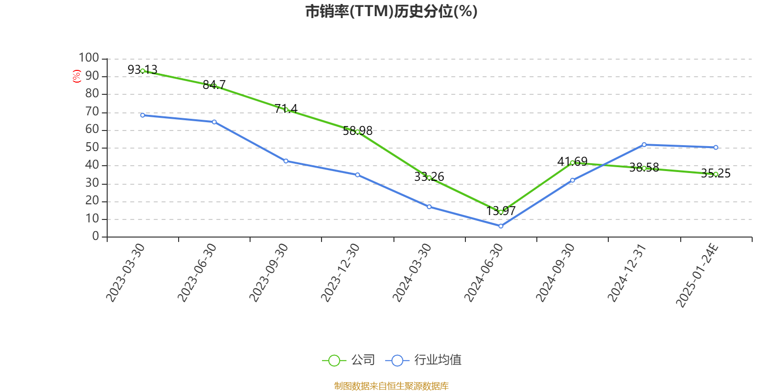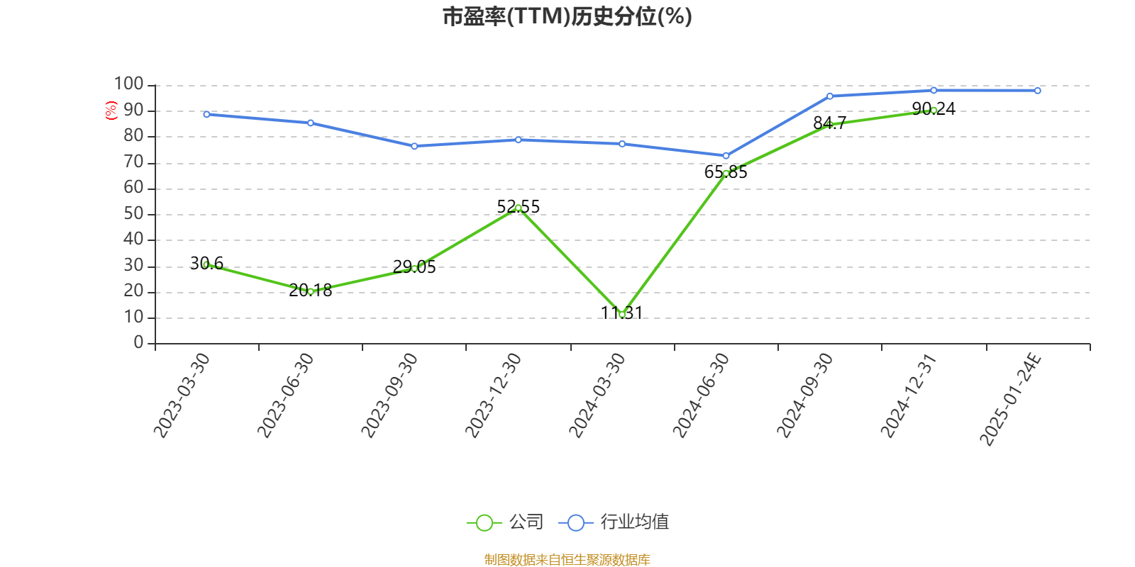 市盈率、市净率为负时,不显示当期分位数,会导致折线图中断。