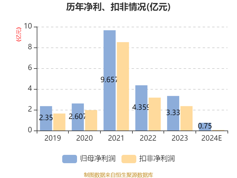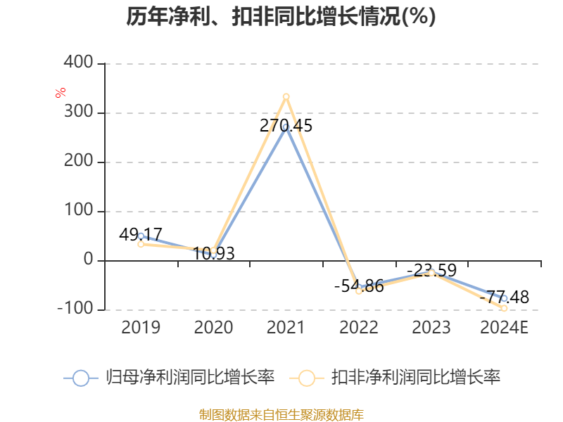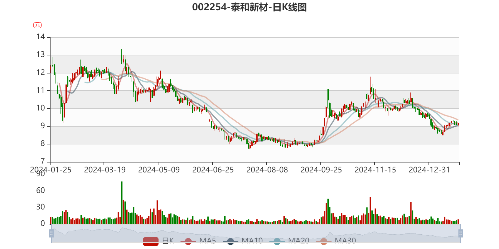 中证智能财讯泰和新材(002254)1月24日晚间披露2024年度业绩预告,预计2024年归母净利润6000万元至9000万元,同比下降72.98%-81.98%;扣非净利润预计100万元-1000万元,同比下降95.75%-99.57%;基本每股收益0.07元/股-0.11元/股。以1月24日收盘价计算,泰和新材目前市盈率(TTM)约为87.96倍-131.94倍,市净率(LF)约1.11倍,市销率(TTM)约2.01倍。