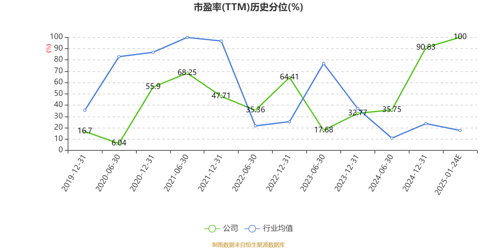 以本次披露业绩预告均值计算,公司近年市盈率(TTM)图如下所示:
