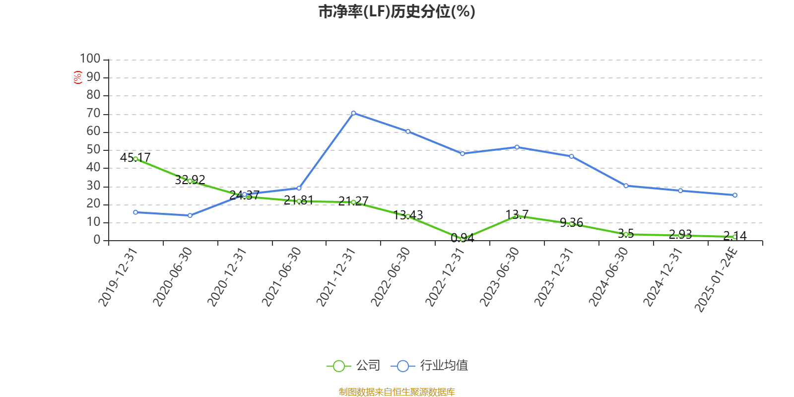 市盈率、市净率为负时,不显示当期分位数,会导致折线图中断。