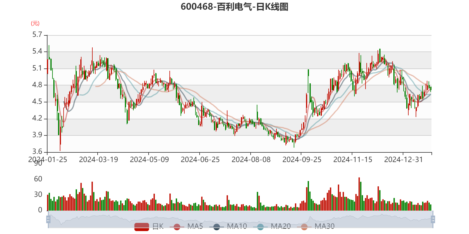 中证智能财讯百利电气(600468)1月24日晚间披露2024年度业绩预告,预计2024年归母净利润亏损8000万元至1.17亿元,上年同期盈利1.19亿元;扣非净利润亏损8500万元至1.24亿元,上年同期盈利1.09亿元。以1月24日收盘价计算,百利电气目前市盈率(TTM)约为-43.88倍至-64.18倍,市净率(LF)约2.41倍,市销率(TTM)约2.67倍。