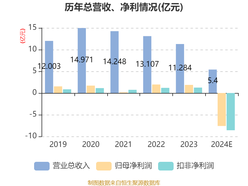 中证智能财讯银河电子(002519)1月24日晚间披露2024年度业绩预告,预计2024年实现营业收入4.8亿元至6亿元;归母净利润亏损6.6亿元至8.6亿元,上年同期盈利1.87亿元;扣非净利润亏损7.58亿元至9.58亿元,上年同期盈利1.25亿元。以1月24日收盘价计算,银河电子目前市盈率(TTM)约为-7.78倍至-10.14倍,市净率(LF)约2.09倍,市销率(TTM)约12.39倍。