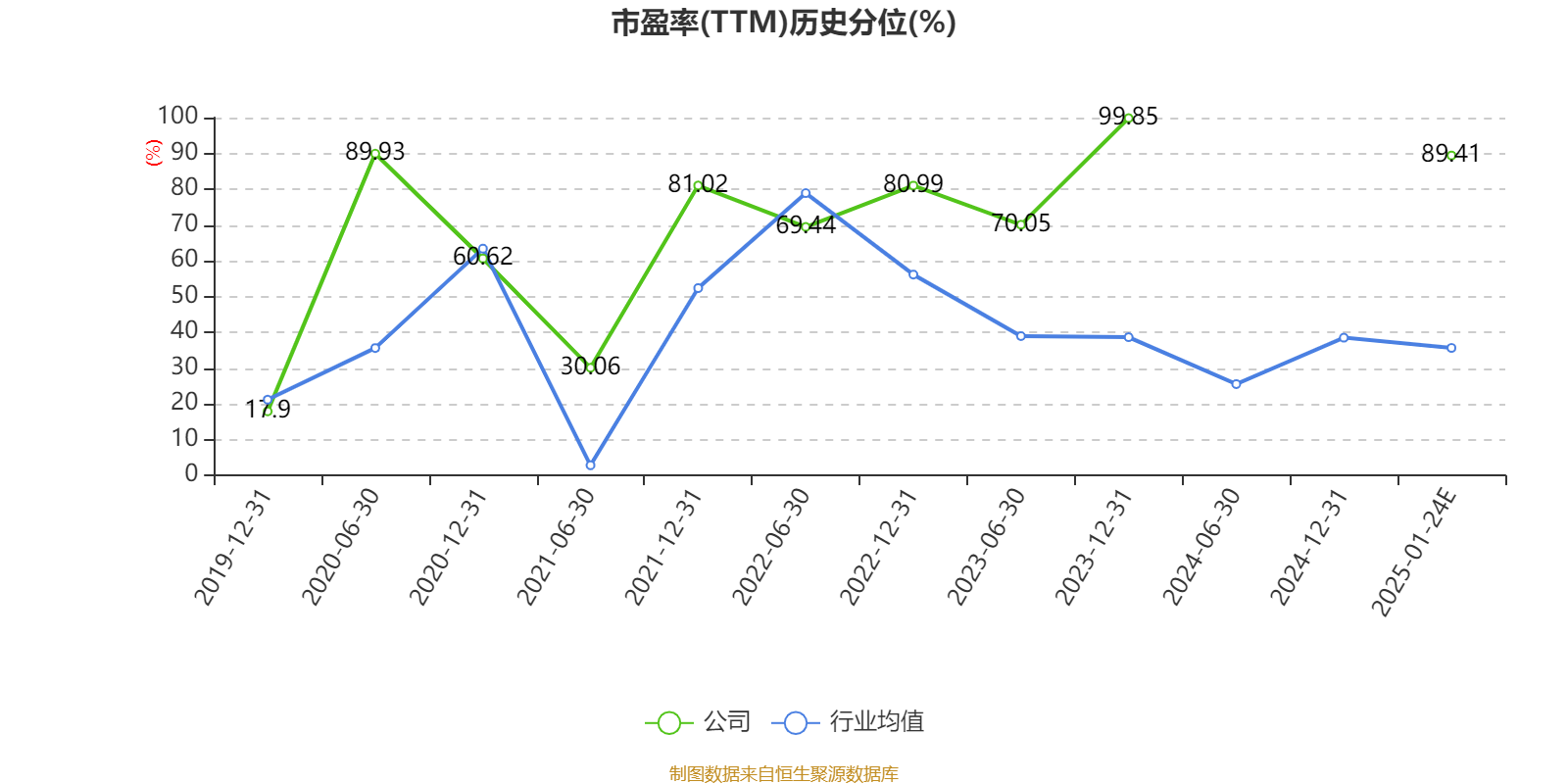 以本次披露业绩预告均值计算,公司近年市盈率(TTM)图如下所示: