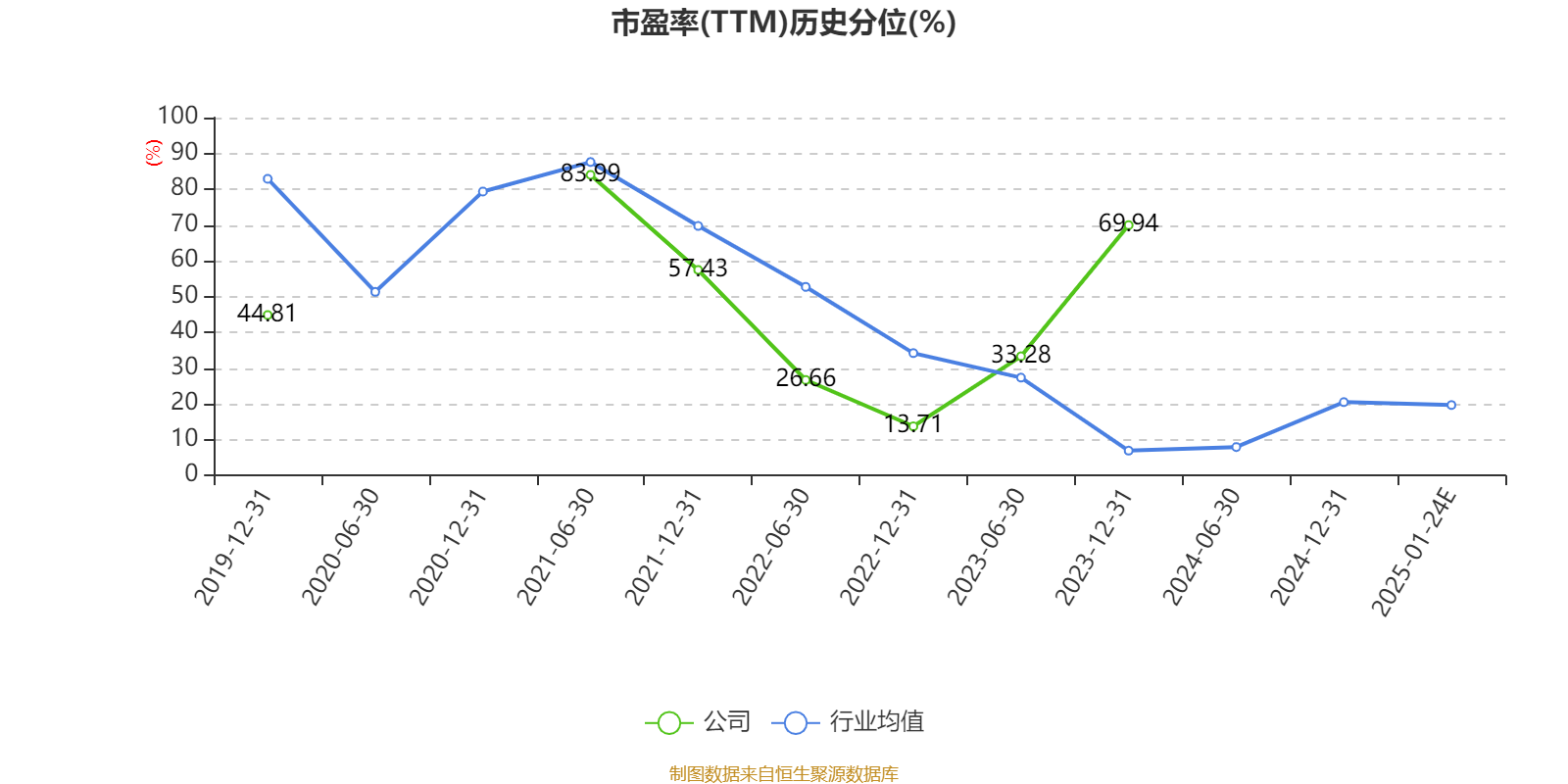 以本次披露业绩预告均值计算,公司近年市盈率(TTM)图如下所示: