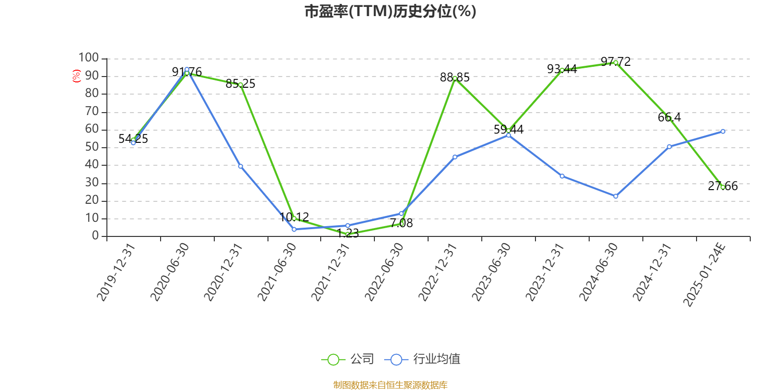 市盈率、市净率为负时,不显示当期分位数,会导致折线图中断。