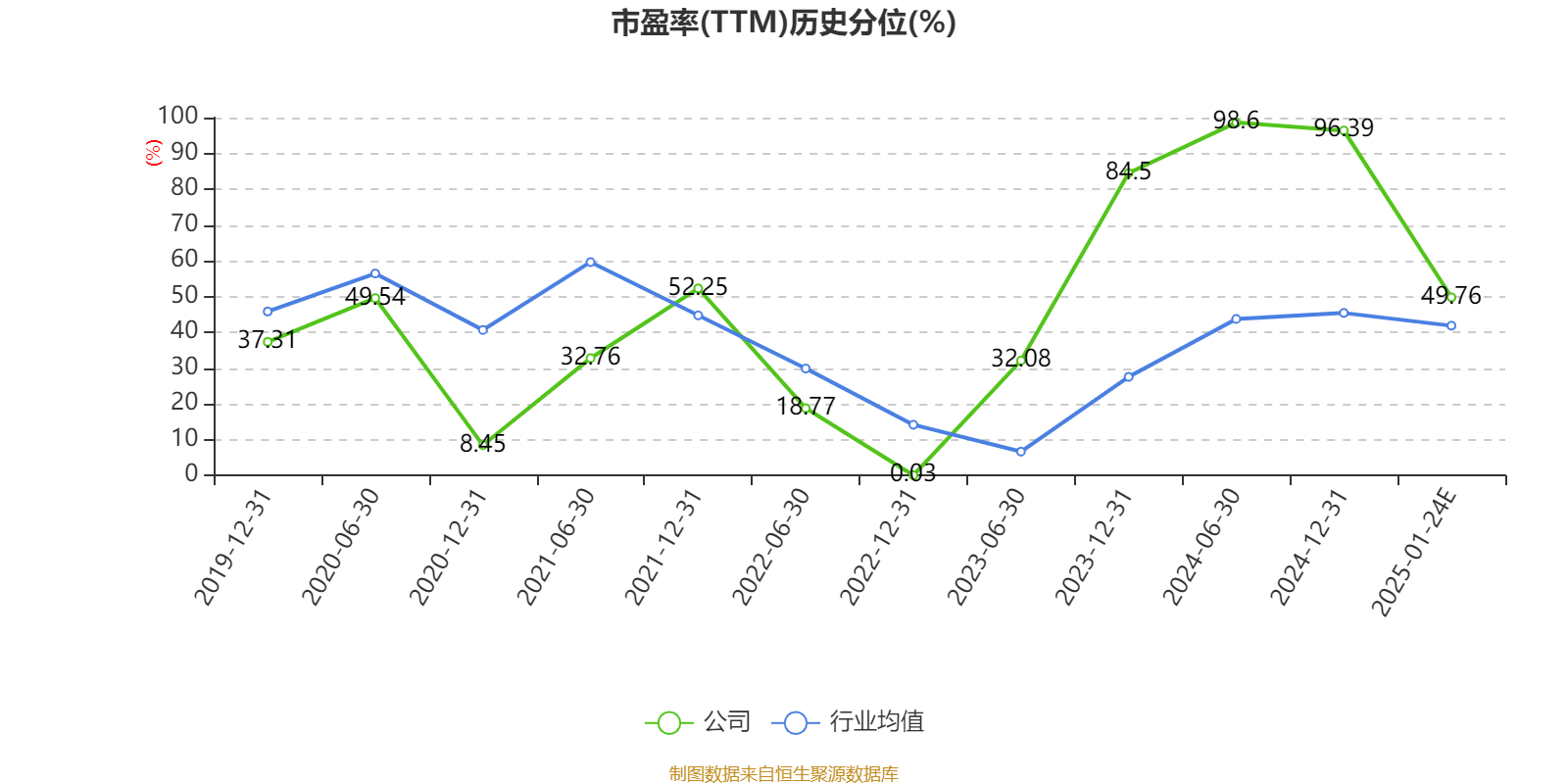 市盈率、市净率为负时,不显示当期分位数,会导致折线图中断。