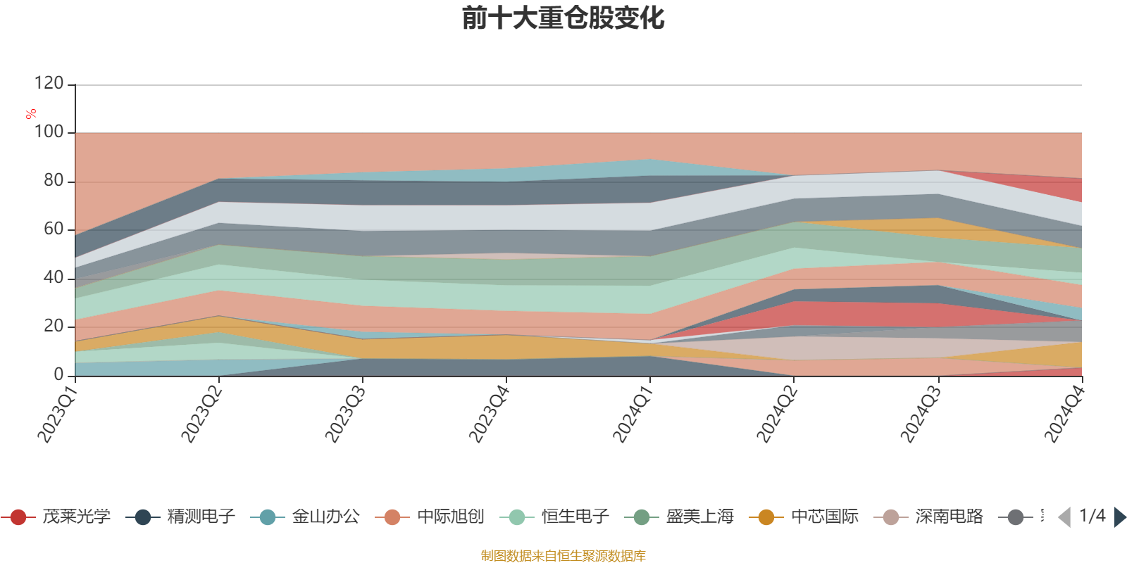 基金管理人在四季报中表示,本季度,组合持有半导体设备、半导体晶圆制造和 AI 算力芯片等核心优质公司,获得一定超额收益。我们始终坚持研究、寻找高质量增长股,与时俱进,不断迭代优化组合。