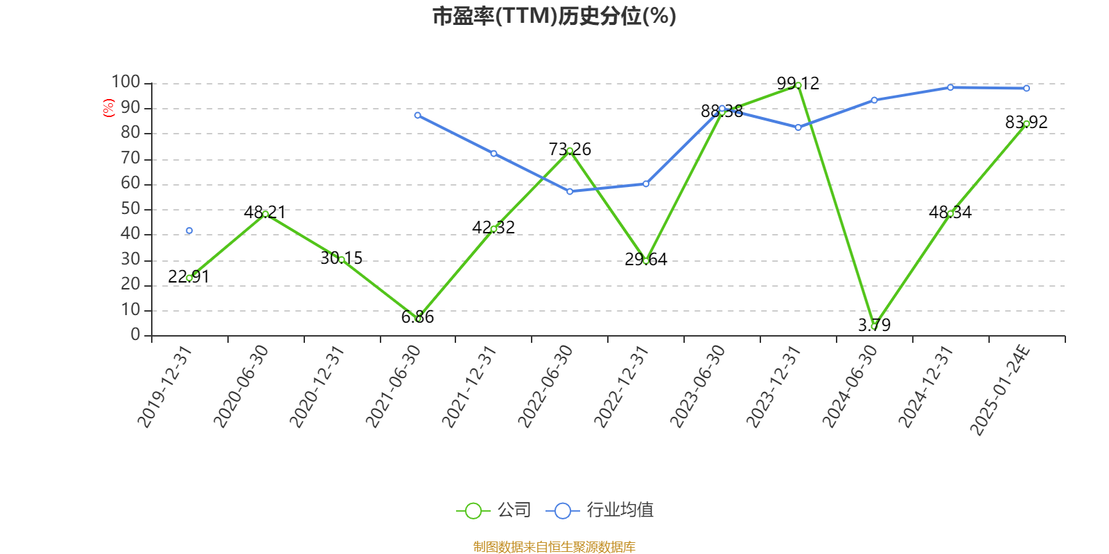 市盈率、市净率为负时,不显示当期分位数,会导致折线图中断。
