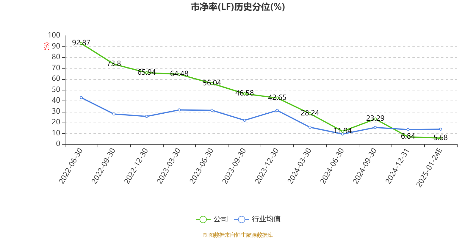 市盈率、市净率为负时,不显示当期分位数,会导致折线图中断。