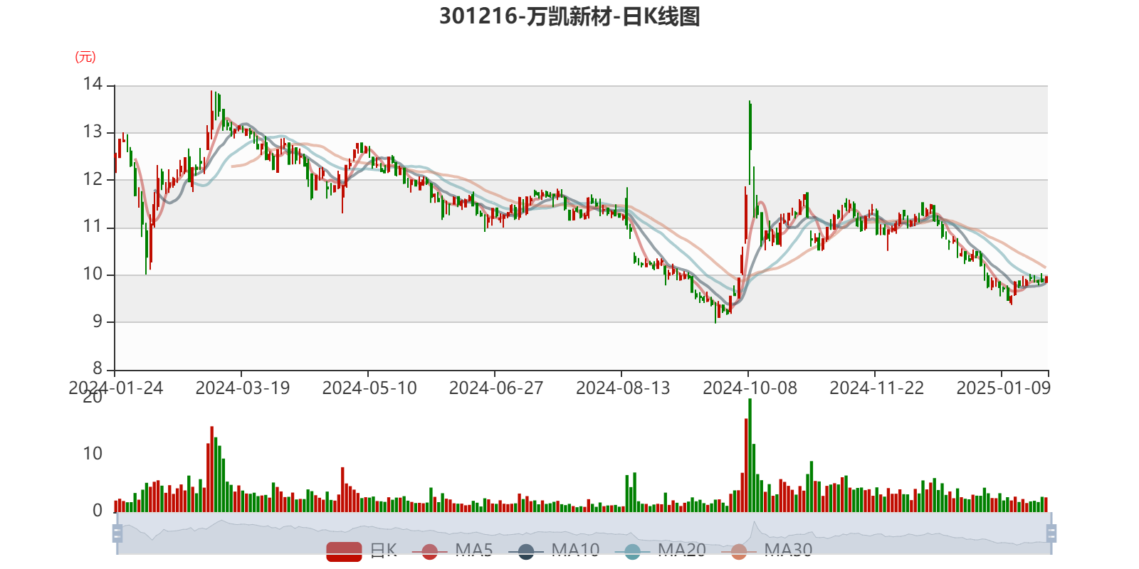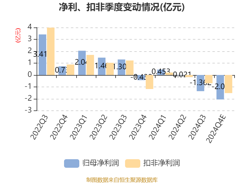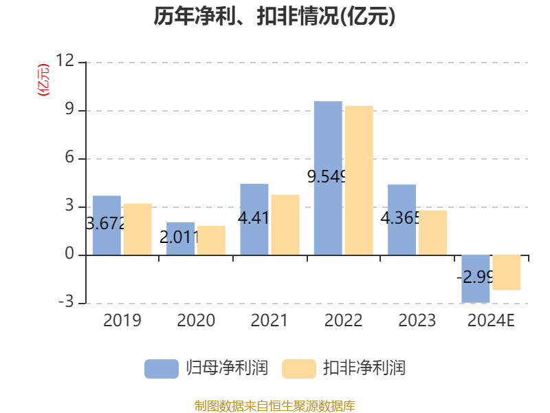 中证智能财讯万凯新材(301216)1月24日晚间披露2024年度业绩预告,预计2024年归母净利润亏损2.6亿元至3.38亿元,上年同期盈利4.37亿元;扣非净利润亏损1.8亿元至2.6亿元,上年同期盈利2.75亿元。以1月24日收盘价计算,万凯新材目前市盈率(TTM)约为-15.18倍至-19.73倍,市净率(LF)约0.93倍,市销率(TTM)约0.29倍。